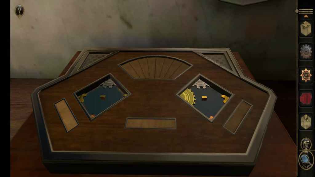 The navigation table will change to have three sliders, two spinning pegs, and a rotating puzzle at the top.