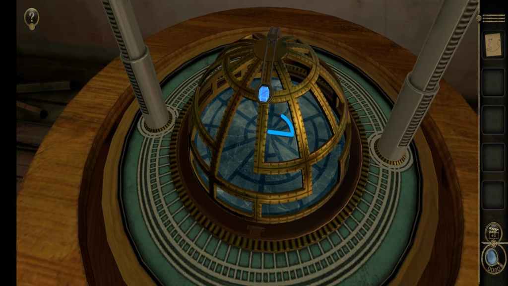 Return to the steering wheel and insert the Key from the globe. Rotate the wheel to unlock the ruby puzzle.
