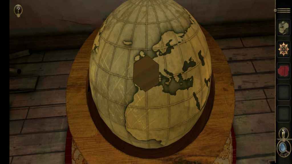 Return to the globe to place the three fragments. This hole is for the fragment labeled "A".