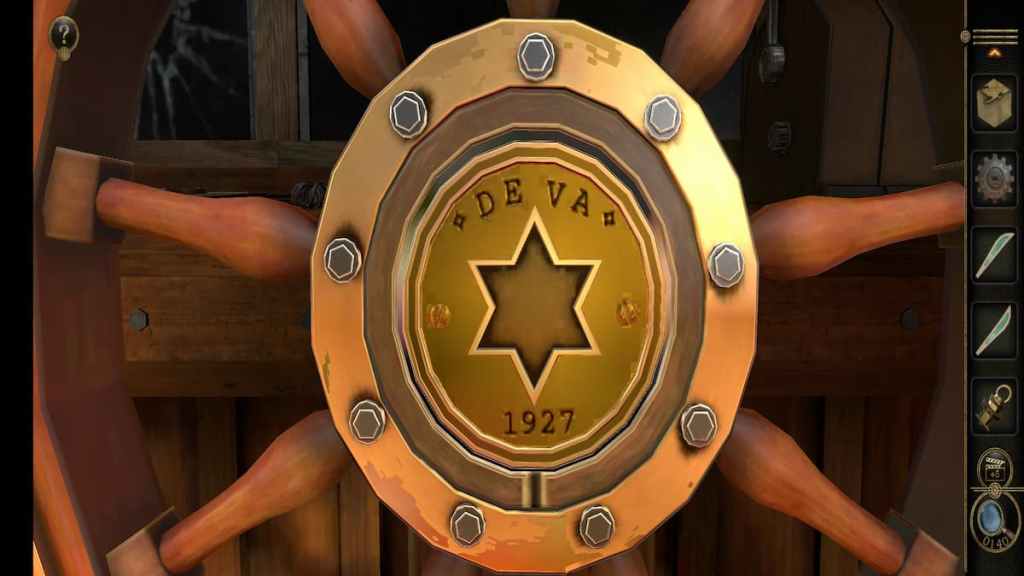 Return to the steering wheel and insert the Key from the globe. Rotate the wheel to unlock the ruby puzzle.