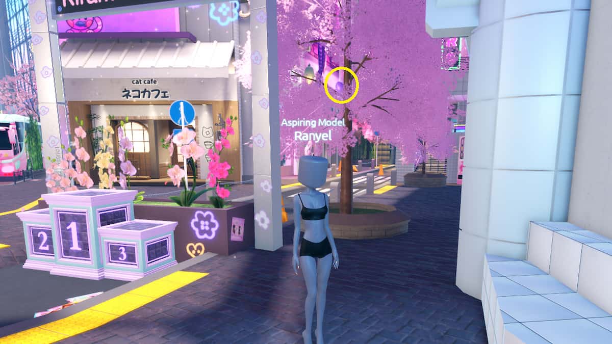 You can find an Easter Egg behind the Kirameki District Podium in front of the Cat Cafe.