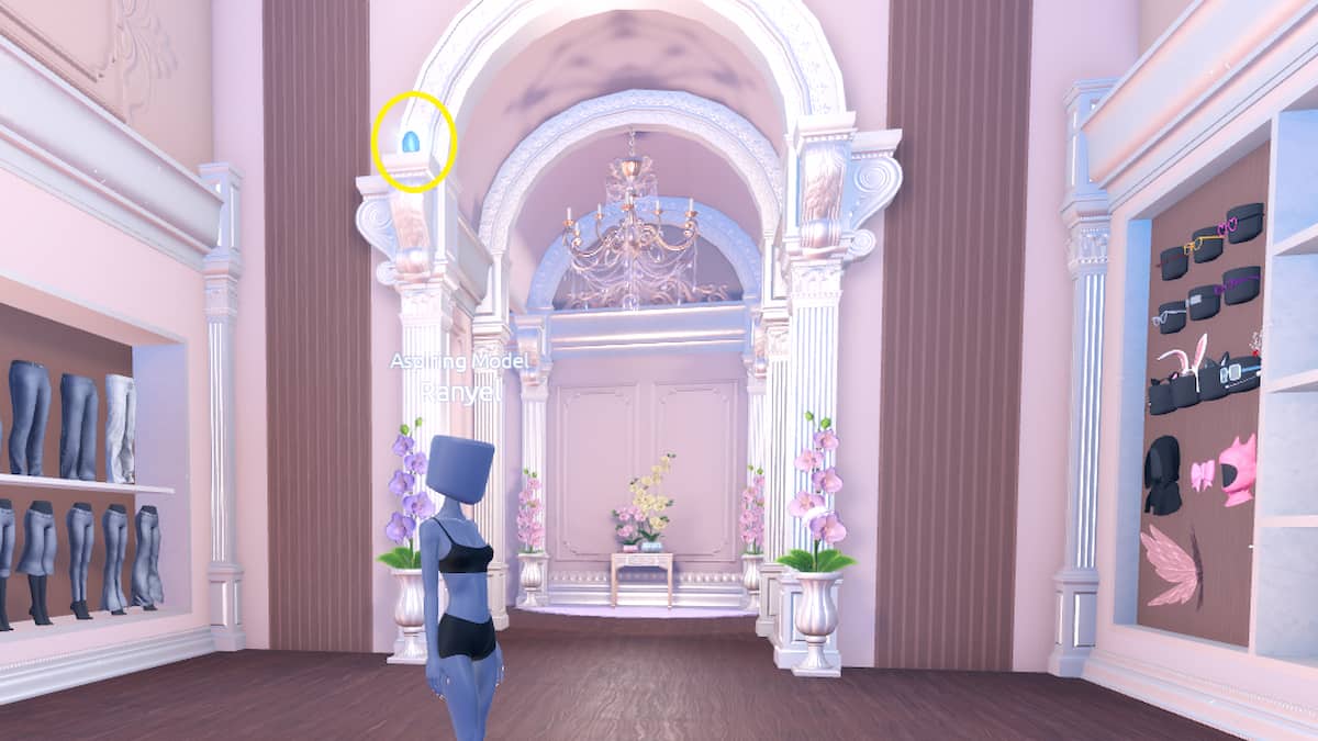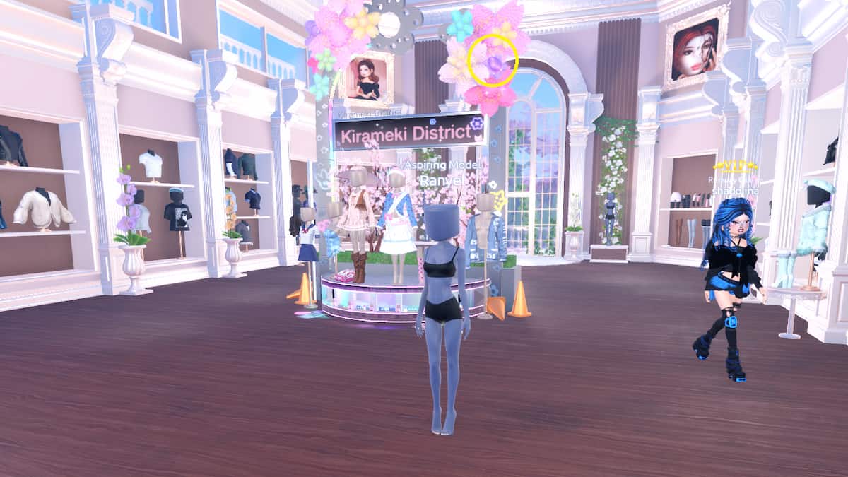 The first Easter Egg is located next to the dummy statue near the window behind the Kirameki District showpiece area.