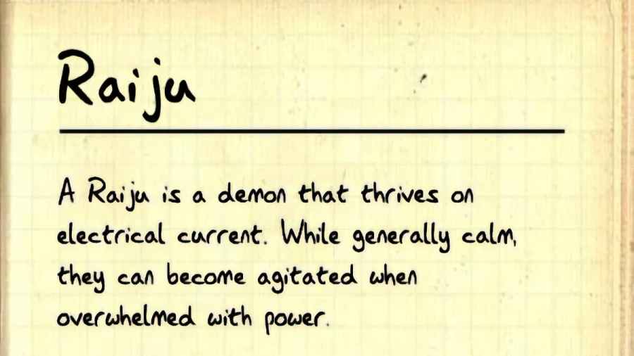 The Raiju is a demon with a severe addiction to electricity and thrives on it because of it. In fact, its main strength is that it will siphon power from nearby electric devices to become super fast. If it gains too much power, it will become agitated and more likely to attack.