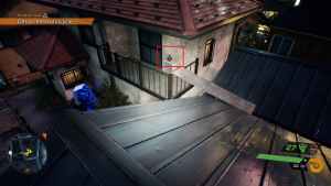 To the east of Shiratsuki Shrine, you’ll eventually find a red car. Climb the building to the right of it, and you’ll see a plank of wood leading to a balcony with the relic.