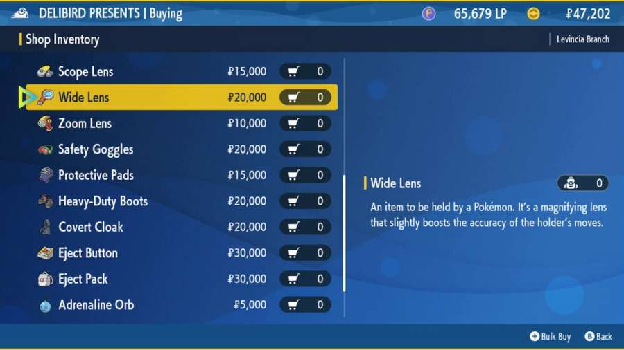 The Wide Lens is a Held Item that will increase the accuracy of moves in Pokémon Scarlet & Violet. Like a majority of Pokémon's Held Items, the Wide Lens can be located at Delibird Presents. Every shop has different stock and the Wide Lens can be found in Levincia's shop. While the item raises accuracy, it won't guarantee that every move lands. This is where to find the Wide Lens and how to use it in Pokémon Scarlet & Violet.