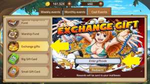 - NEWPLAYER—Redeem for 100x Diamonds, 12 Hours Belly Chest, 12 Hours Hero EXP Chsst, 50x Great Pirate Shards, 5x Gallon of Beer, 5x Premium Beer (New)
