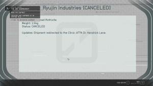 You don't have to read the file. Just open it and then close it for objective completion. But you should still have one objective left to complete before getting the next task for The Key Ingredient quest. Use the CM Station RC-1 Computer and go to the Shipment folder. Open Ryujin Industries [Canceled], and the objective to find the Rothicite Shipment will be over, after which you'll be directed to The Clinic.