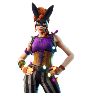 Bunnymoon was a late leak after the Fortnitemares patch. It appears to be a skin with kind of a mixed outfit as the joke in the description of the skin indicates. She even features Christmas lights which are remarkably out of season for this kind of skin!