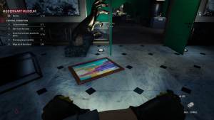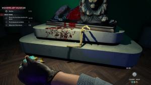The second piece of evidence is some knuckle dusters lying on the floor beneath the dripping blood. To open up the whole room, look to the left of where you found this evidence and seek out a large painting. Get close to it and interact with it, as it's a secret little room with another body.