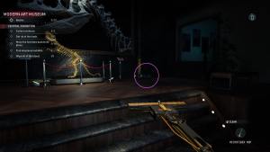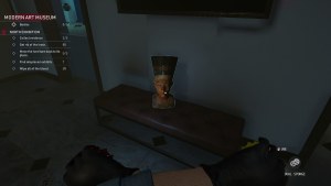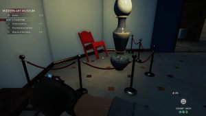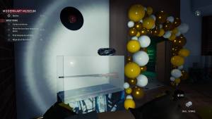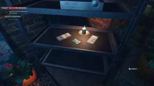 Once you reach the top, interact with the Golden Cassette Tape, and a secret door opens next to the wall. Use the same display case to cross into this room, where you can find some valuables.