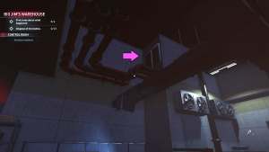 To get to the next floor of the warehouse, jump on the conveyor belt and follow it all the way up. You'll eventually come across a door with a body caught under it and a Conveyor Belt Keycard you need to pick up.