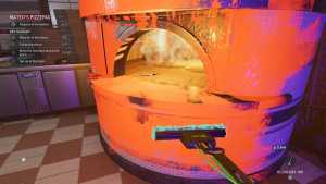 When you first enter the pizzeria, head to the bathroom where the water tap is. Your first piece of evidence is here: a gun, and an homage to a certain McRoyale-loving character in the bathroom stall. Fill up your bucket and start cleaning the main restaurant first.