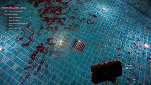 Two pieces of evidence can be found along the pool: a cellphone and an ice pick. To drain the pool, you need to go through the door that needs to be hacked to be opened. Hacking is a fairly simple process; you just need to press the numbers indicated at the bottom when the line crosses them at the top.