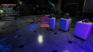 Once you're done, you can head back to the main doors where you first entered. There are two more bodies and another piece of evidence on the floor in this area. Clean it up and head upstairs to the Colorful Room.