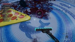The third piece of evidence, a gun, is in the pool. Once you've cleaned up this area, you can find the fourth piece of evidence in the relaxation room to the right of the main room - a pizza cutter.
