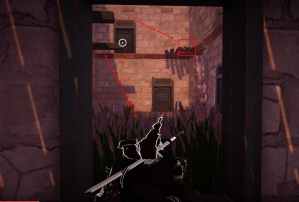 Moving towards our arrow will take you to a scene that looks like something in the image above. Here you will want to use shadow leap to hop on the fence where our arrow is pointing. But you will also want to watch out for the guard marked by a red box.