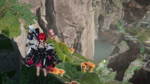 The second Auronyx location is accessed similarly to the first, though you should instead take the jump across the fence straight from the teleport point and jump across the abyss with the jump pad eastward. The ore growth is found inside of the cave a little bit more to the south. You will need to clear out two corruption cores in order to be able to take this path.