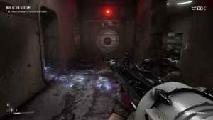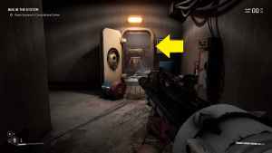Go through the door and down the stairs to find your first chest. Open it to claim the Kalash-Extended Magazine. Continue to find a door and two shock devices. Connect the devices with the Polymer Jet and Shok the connection. Quickly move through both doors when they open.