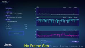 Based on the benchmark images above, I got a significant FPS boost of about 60% while using Frame Generation. While this doesn't necessarily double my framerates, it makes the experience much more smooth at the expense of a slight input lag.