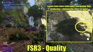In the photo below, you can see FSR3 has a much more blatant shimmering effect on thin objects like tree leaves compared to DLSS.