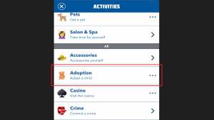 - Apart from having biological children, the other best way to have offspring is by adopting orphans. You can visit the adoption center by pressing the Adoption option from the main Activities menu. After that, choose any child of your liking and hit the Adopt button.