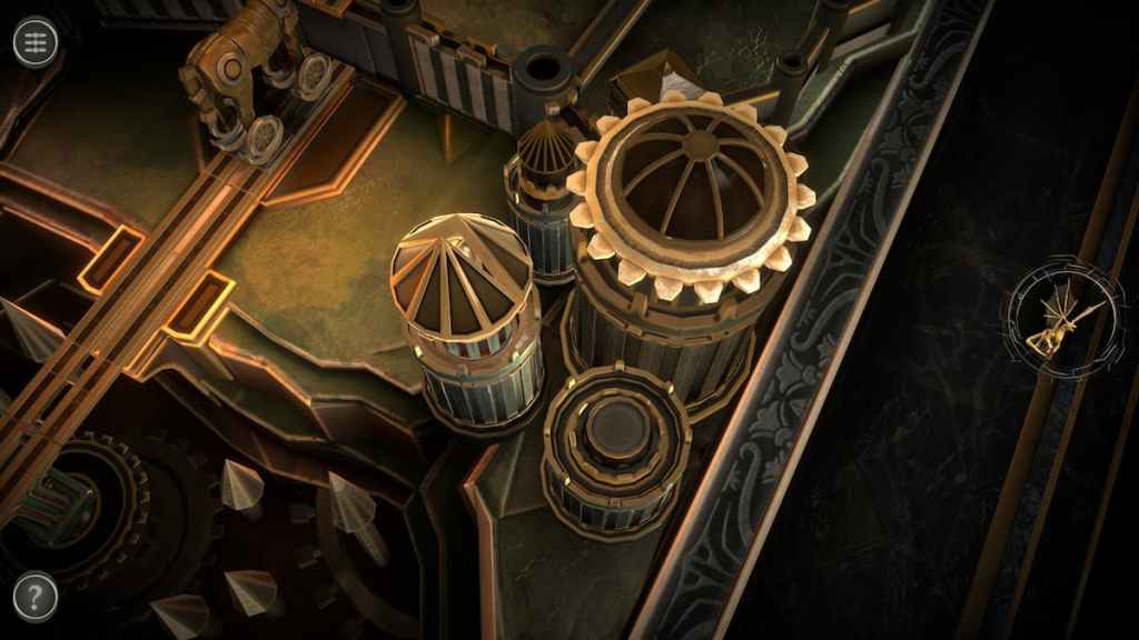 Then, rotate the puzzle so that the pathway falls into place. The gear should be held in place by the nearby wall.