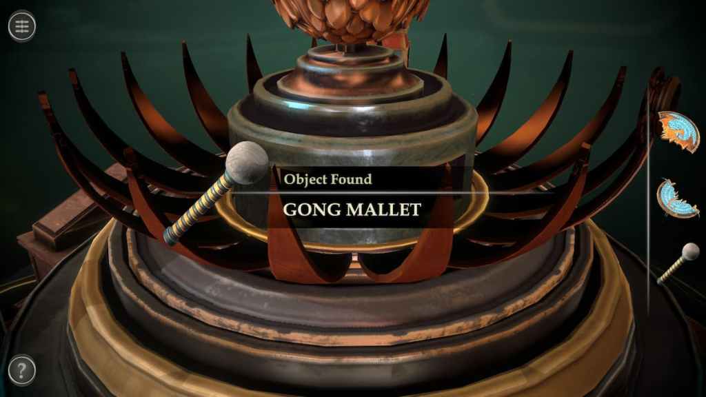 This will make a gong rise from the roof. Hit it with the Gong Mallet.