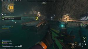 If you've managed to flip all nine electrical breakers within three minutes, a loot cache will be marked on your screen. To access it, head back to the submarine dock area next to the bunker. Dive underwater at the location shown in the first image. You'll then find a large pipe that leads to the other side. Approach the trip wires and defuse them before proceeding. On the other side of the pipe, you'll find two metal columns. Jump onto these platforms one after another and reach the marked cache.