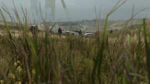 For the second patrol, Gaz will be by himself with more time to get around and figure out where to hide. The easiest place to avoid the guards is the flower bush nearby. Staying inside and being perfectly still without so much as head movement should keep the guards clueless that anyone is around. Moving too quickly after they pass will have them turn around and shoot the player, making it necessary to not move until they don't see any yellow dots on their compass. Once they walk past, one of the trucks will leave after a short time. The second truck will remain, but players should avoid firing at them until the third guard is gone, or just ignore them entirely and run toward the objective.