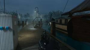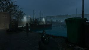When reaching the right part of the docks, a lone guard can be seen sometimes smoking towards the water on the left. Players should only take out this guard when the patrol boat is away and the guard on the other side of the docks is far away. From there, players can swim underwater heading in the direction of the barge. A guard can be seen by the pier, but players should avoid taking him out until later because another guard will alert everyone if he dies. Instead, players should go underwater and head as far left as possible.