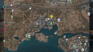 To acquire the letter, infiltrate into Al Mazrah and head over to Sarrif Bay, a POI in the southern part of the map by the sea. At the location marked on the map above, you'll find a large structure with a clocktower, underneath which there'll be an entrance to the bathhouse (see second image). Enter the Sarrif Bay Bath House and pick up the Driver's Note placed next to the statue. Extract from the DMZ with this letter to complete the first task in the Missing Person mission. Just so you know, the Clock Repair Tools locked loot cache sits on top of the same clocktower.