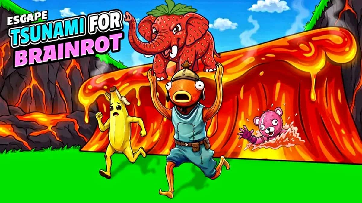 Survive using Escape Tsunami for Brainrot Fortnite codes.