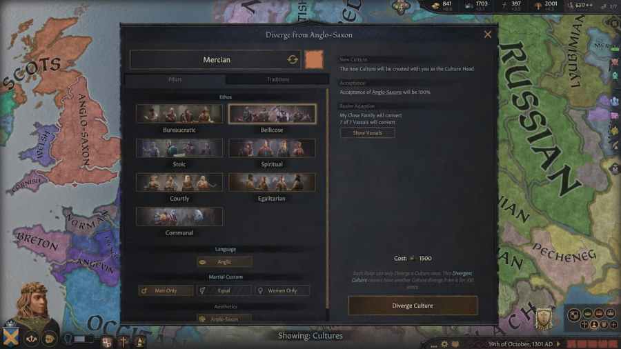 But what makes Cultural Acceptance so important? At its core, Cultural Acceptance will affect how characters from different cultures interact within your kingdom. For example, Low acceptance leads to more rebellions, vassal discontent, and overall instability, while higher acceptance opens doors to higher opinion and peace.