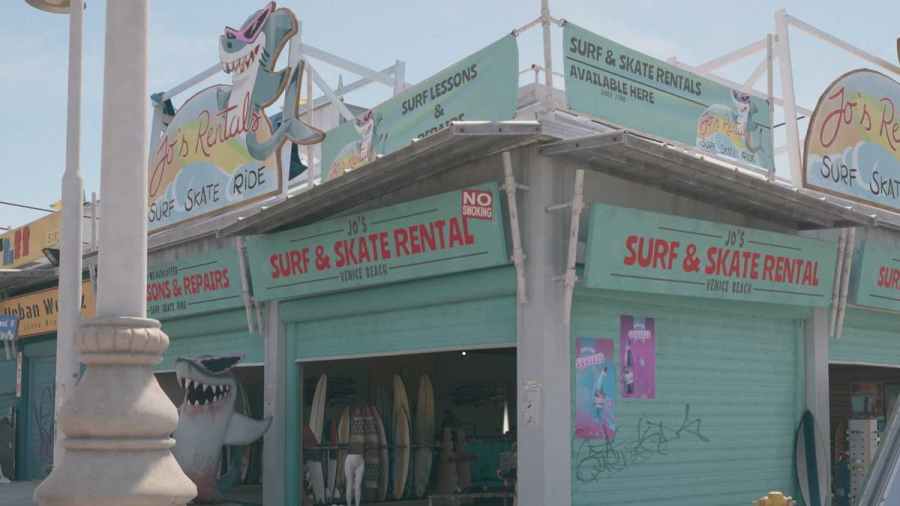 The starting item for Jo's Rainy Day Stash can be found inside Jo's Rentals next to the Tasty Donuts in Venice Beach. You must break the glass to get in, so destroy the alarm first. In the back of the room is Jo's phone.