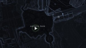 The first action figure is located smack in the middle of Ahimsa Park. After entering the park, look for a large building in the middle with a curved roof. Inside will be murals of Pouka. Check under the stairs leading outside. Tucked away in the rocks will be the first action figure.
