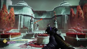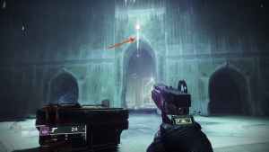 This Darkness Rift is situated high above your head in the Court of Thorns. This one is a bit tricky as it appears the Rift doesn't properly appear for all players. However, even if you cannot see the Rift on your screen you should still be able to shoot it and close it. Using the image above you will be able to see that the arrow is pointing directly at where the Rift is. Shoot in this area until you get an Immune notice. Once you get that, just apply your Worm Byproduct buff and shoot in the same place you got the Immune ping.