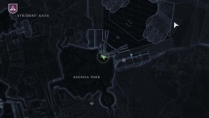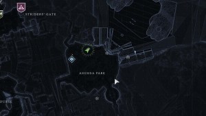 Spawn in at Strider's Gate and head East towards Ahimsa Park. There will be a contingent of Shadow Cabal forces once you enter the park, on the left. Go past them and look over the ledge. There will be a ledge with glittering black sand. Jump down to find a cavern containing the chest.