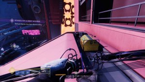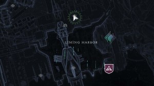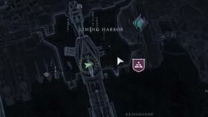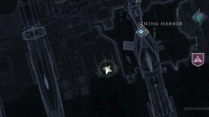 Proceed South from Ahimsa Park to reach Liming Harbor. As soon as you reach the Harbor, stick to the North wall. Just past a group of Vex will be a dual-bladed fan inserted into the wall. Jump up on the post supporting the blades to find the first chest.
