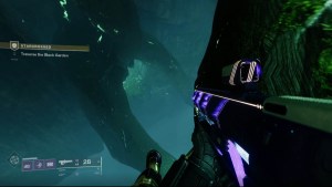Located at the beginning of the mission, where you're traversing over the branches and leaves of the Black Garden. Eventually, you'll curve to the right and head over an enormous branch. Look down to spot a ledge that leads to a cave containing the chest.