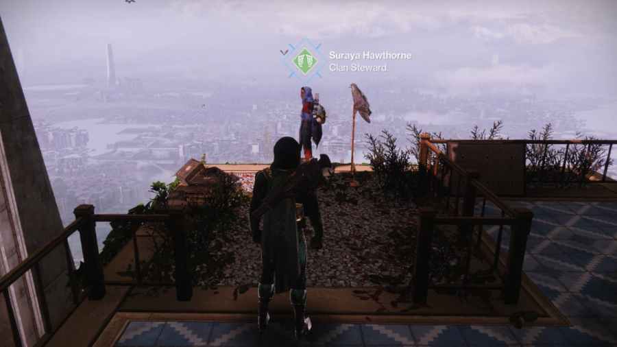 Hawthrone is the Clan Steward at the Tower, and she will offer various goods and services. The first of which is selling players various boosts called Raid banners that allow Fireteam members to gain Super Energy and Heavy ammo in Raid encounters. On top of Raid Boosts, she also has a weekly bounty you can complete. Completing the bounty will reward you with Legendary engrams.