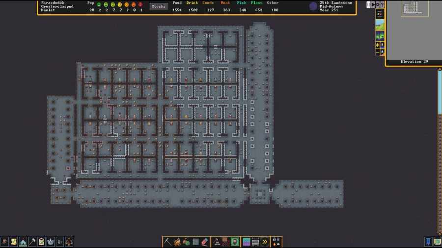 - Quick levels detail - This is a representation of the current level and elevation of your fortress, with the current elevation you’re on being roughly in the middle.
