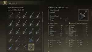 - Purchase the Maliketh's Black Blade Colossal Sword (20000 Runes)