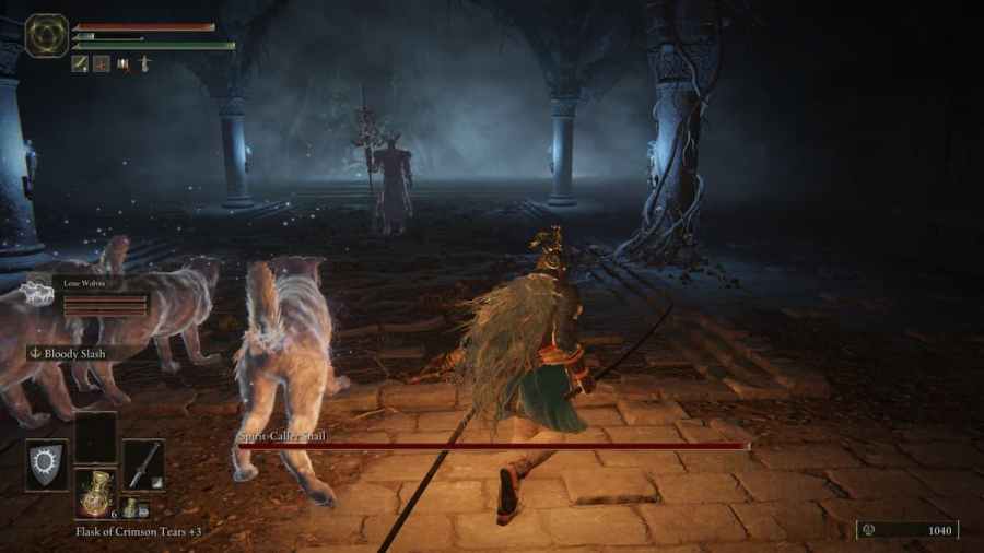 The main threat in this fight is the summoned knight. This knight will perform various slow attack combos to deal large amounts of damage. The best strategy for this fight is to summon your own spirits and distract the knight while you chase the Snail around the room. If your spirit summon is destroyed, continue to ignore the knight. Once the Snail is destroyed, the fight will end.
