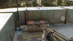 You can find the two charts you need to unlock the chest in the same area on the map. The first one can be found on a rooftop nearby, as shown below.