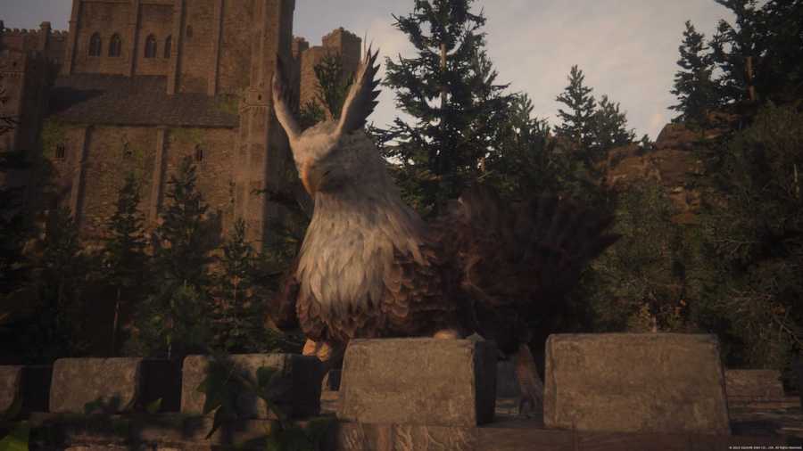 Dozmare the Griffin, your target mark for this quest, can be found near the Caer Norvent river gate. The fastest way to reach it is to fast travel to the Obelisk at Lostwing and ride your Chocobo southeast. Once you’re there, a cutscene will automatically trigger, letting you know you’ve found your mark.