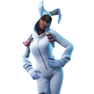 Bunny Brawler is an Easter inspired skin that came out with the Pastel Patrol package. This is the female version and features a female character in a white bunny costume. She also features some knee pad armor and cute little bunny slippers! This skin comes with the Eggshell back bling!