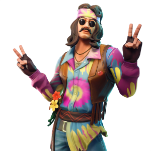 The Far Out Man Skin is an Epic Fortnite Outfit from the Flower Power set. It was released on September 2nd, 2018 and was last available 231 days ago. It can be purchased from the Item Shop for 1,500 V-Bucks when listed. Far Out Man was first added to the game in Fortnite Chapter 1 Season 5.