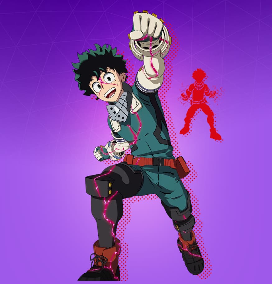 The Izuku Midoriya Skin is an Epic Fortnite Outfit from the My Hero Academia set. It was released on December 16th, 2022 and was last available 62 days ago. It can be purchased from the Item Shop for 1,600 V-Bucks when listed. Izuku Midoriya was first added to the game in Fortnite Chapter 3 Season 3.