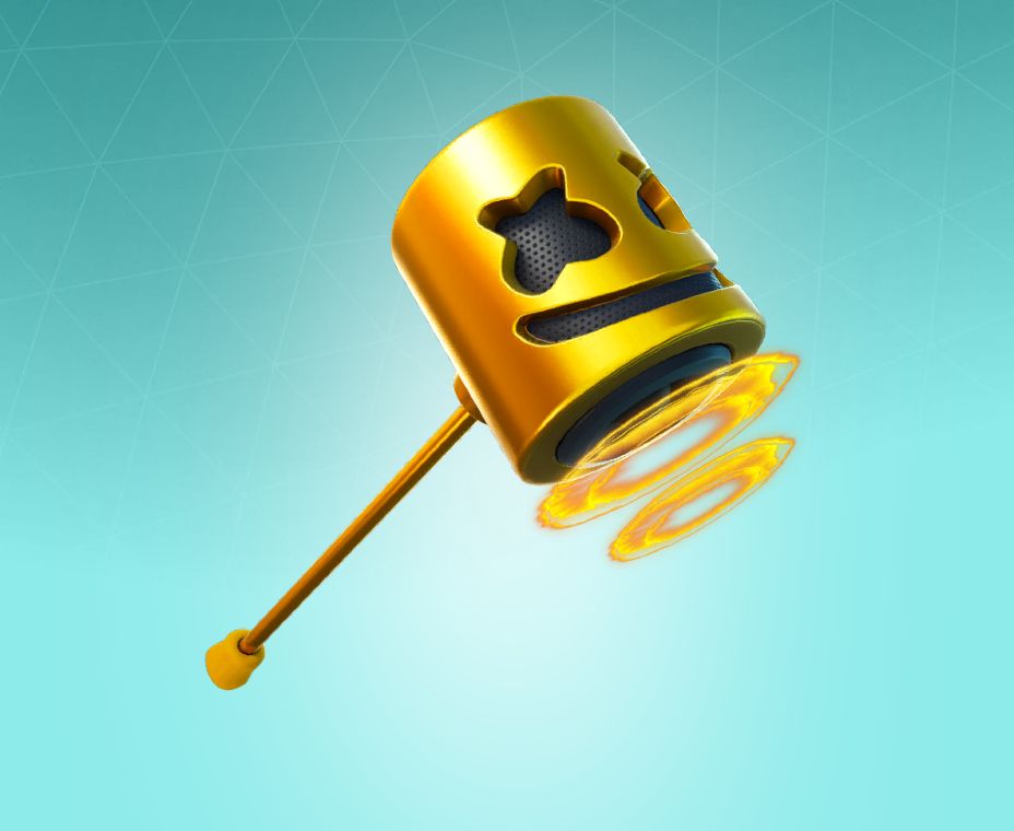 Marshy Smasher is an Icon Series Fortnite Harvesting Tool from the Marshmello set. Marshy Smasher was first added to the game in Fortnite Chapter 1 Season 7.