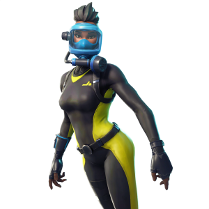Reef Ranger is the female version of the scuba diver skin that will be release during Season 5. It features a pretty standard looking diving suit, with a large bright blue regulator dive mask. Her diving suit also has yellow highlights, which match her Air Tank back bling.